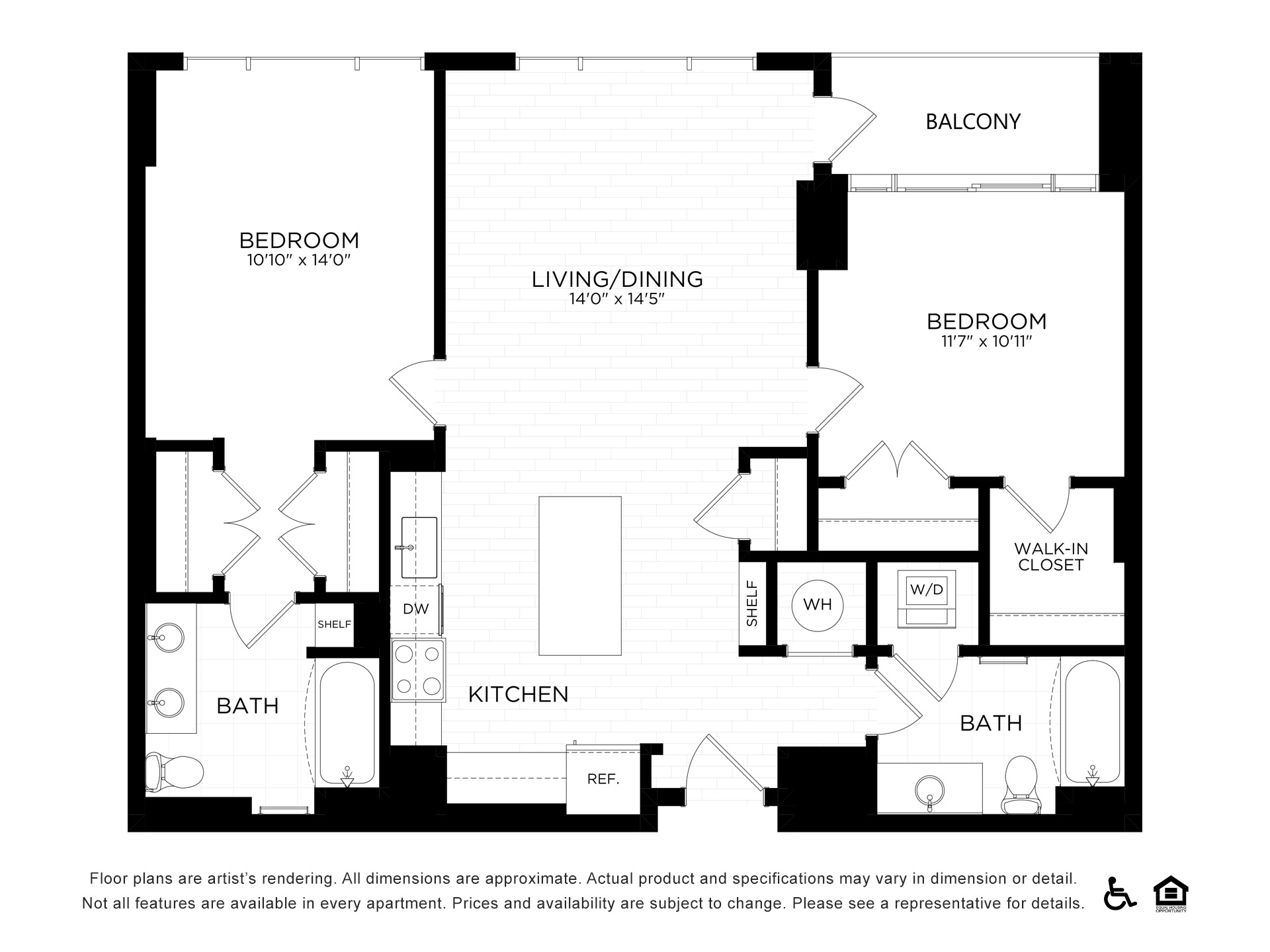 Floor plans are an artist’s rendering and may not be to scale. The landlord makes no representation or warranty as to the actual size of a unit. All square footage and dimensions are approximate, and the actual size of any unit or space may vary in dimension. The rent is not based on actual square footage in the unit and will not be adjusted if the size of the unit differs from the square footage shown. Further, actual product and specifications may vary in dimension or detail. Not all features are available in every unit. Prices and availability are subject to change. Please see a representative for details.