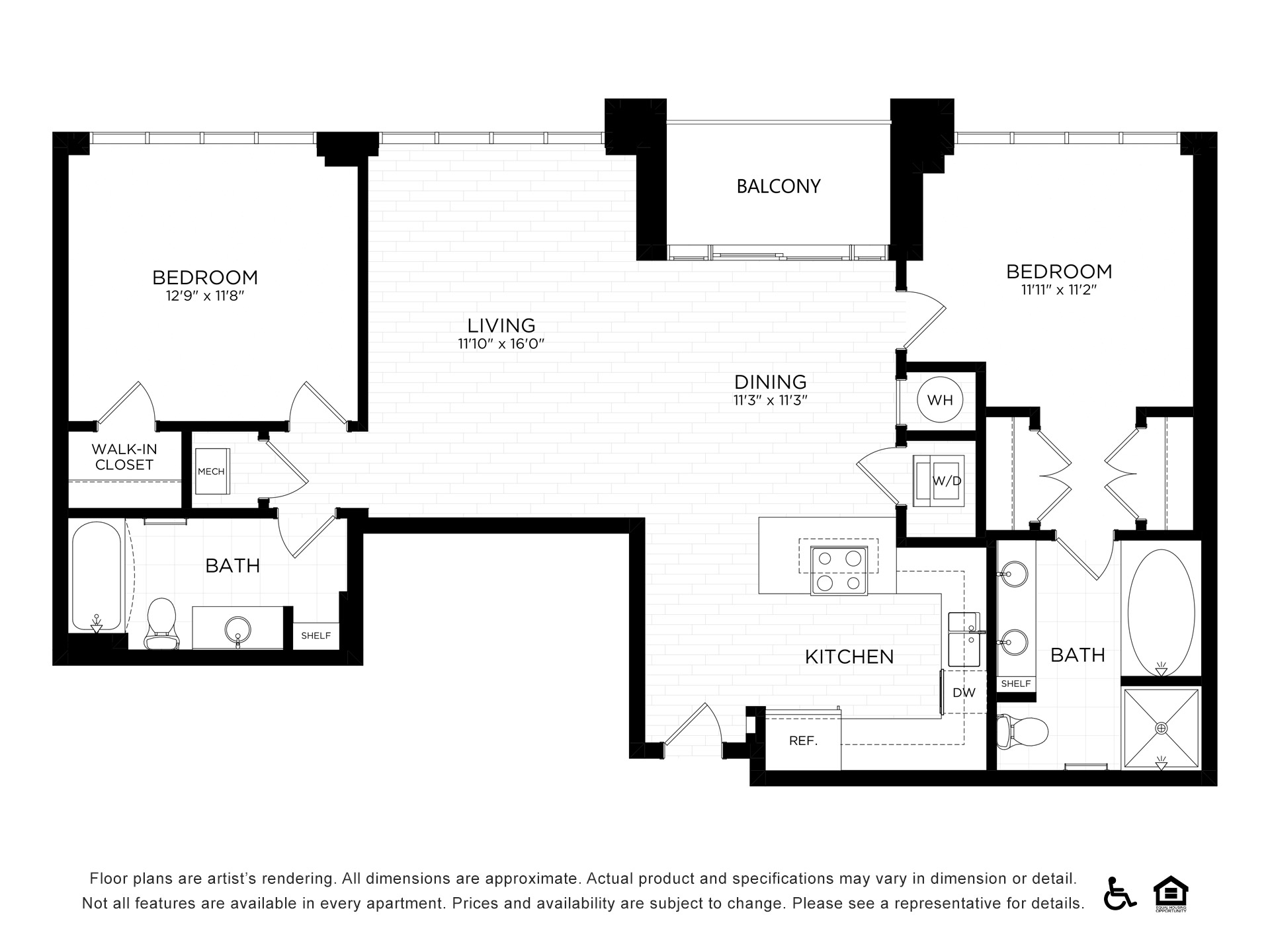 Floor plans are an artist’s rendering and may not be to scale. The landlord makes no representation or warranty as to the actual size of a unit. All square footage and dimensions are approximate, and the actual size of any unit or space may vary in dimension. The rent is not based on actual square footage in the unit and will not be adjusted if the size of the unit differs from the square footage shown. Further, actual product and specifications may vary in dimension or detail. Not all features are available in every unit. Prices and availability are subject to change. Please see a representative for details.