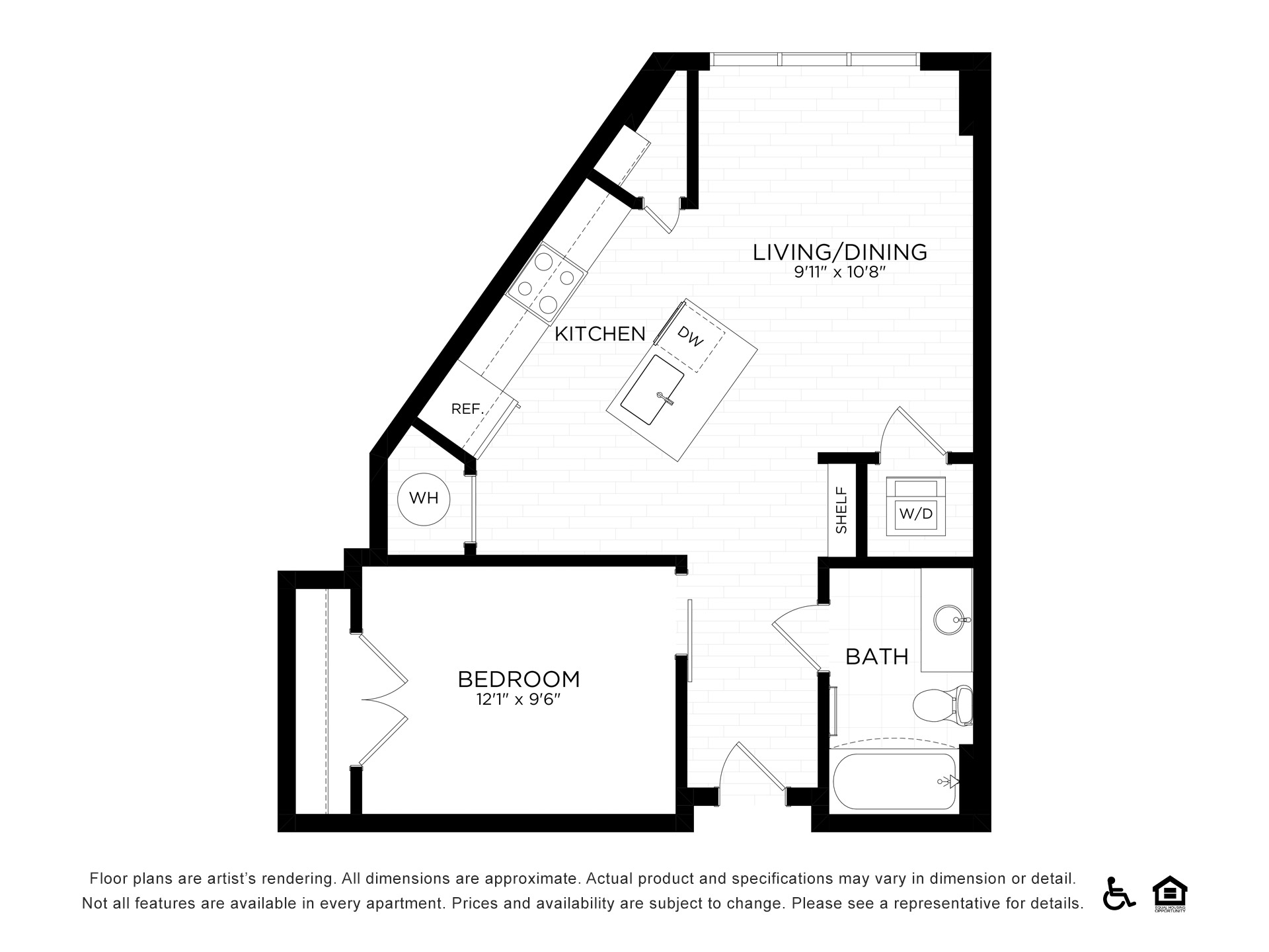 Floor plans are an artist’s rendering and may not be to scale. The landlord makes no representation or warranty as to the actual size of a unit. All square footage and dimensions are approximate, and the actual size of any unit or space may vary in dimension. The rent is not based on actual square footage in the unit and will not be adjusted if the size of the unit differs from the square footage shown. Further, actual product and specifications may vary in dimension or detail. Not all features are available in every unit. Prices and availability are subject to change. Please see a representative for details.